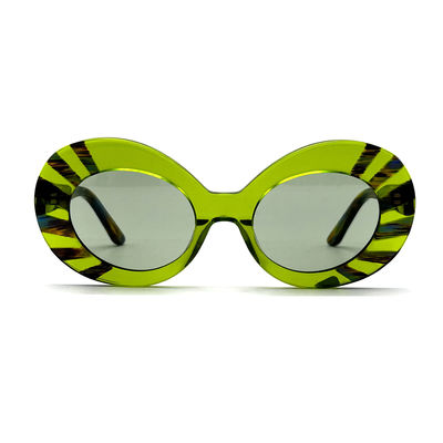 Las gafas de sol de marco de acetato tienen un tamaño de marco de 50-21-145, lo que las hace perfectas para mujeres con una forma de ojos redondos.Esto significa que puede usar estas gafas de sol fuera sin preocuparse por dañar sus ojos por los rayos nocivos del sol.